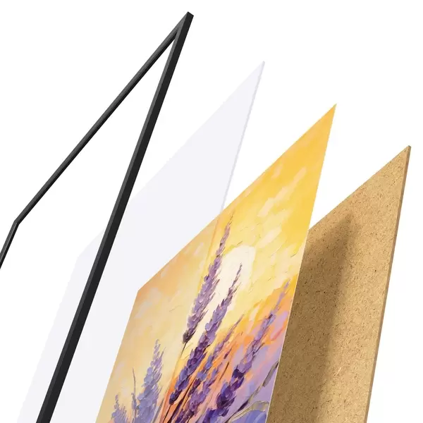 Plakat koosneb raamist, pleksiklaasist, trükitud pildist ja puitlaastplaadist alusplaadist. Tänu tagaküljel olevatele kinnitustele saab plakati kohe seinale riputada.