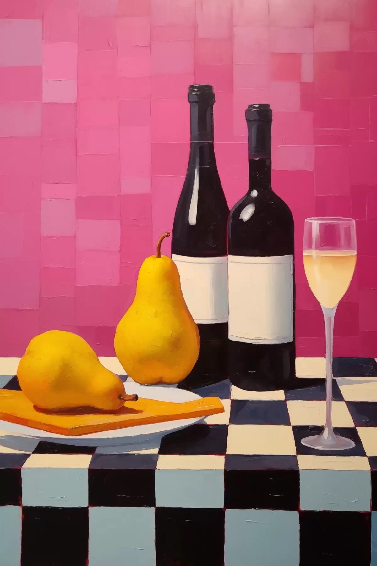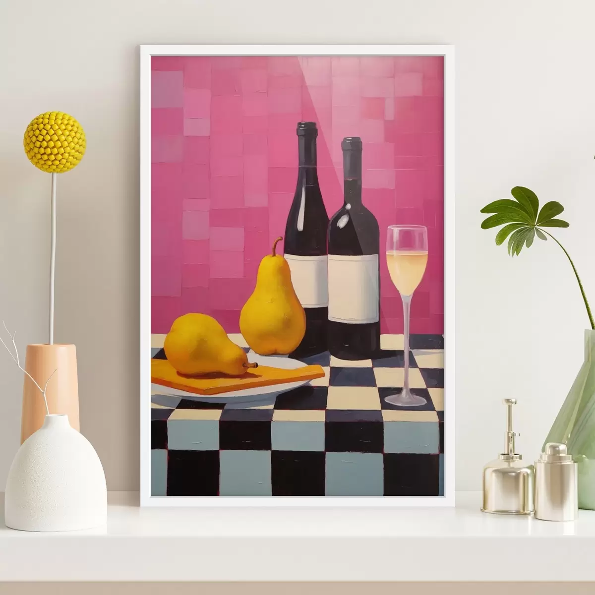 Poster Pirnid, klaas veini ja kaks pudelit veini Nr f44683
