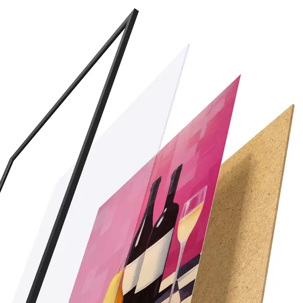 Plakat koosneb raamist, pleksiklaasist, trükitud pildist ja puitlaastplaadist alusplaadist. Tänu tagaküljel olevatele kinnitustele saab plakati kohe seinale riputada.