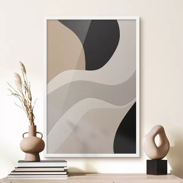 Plakat Abstraktsed lained beeži ja musta värvi f44688