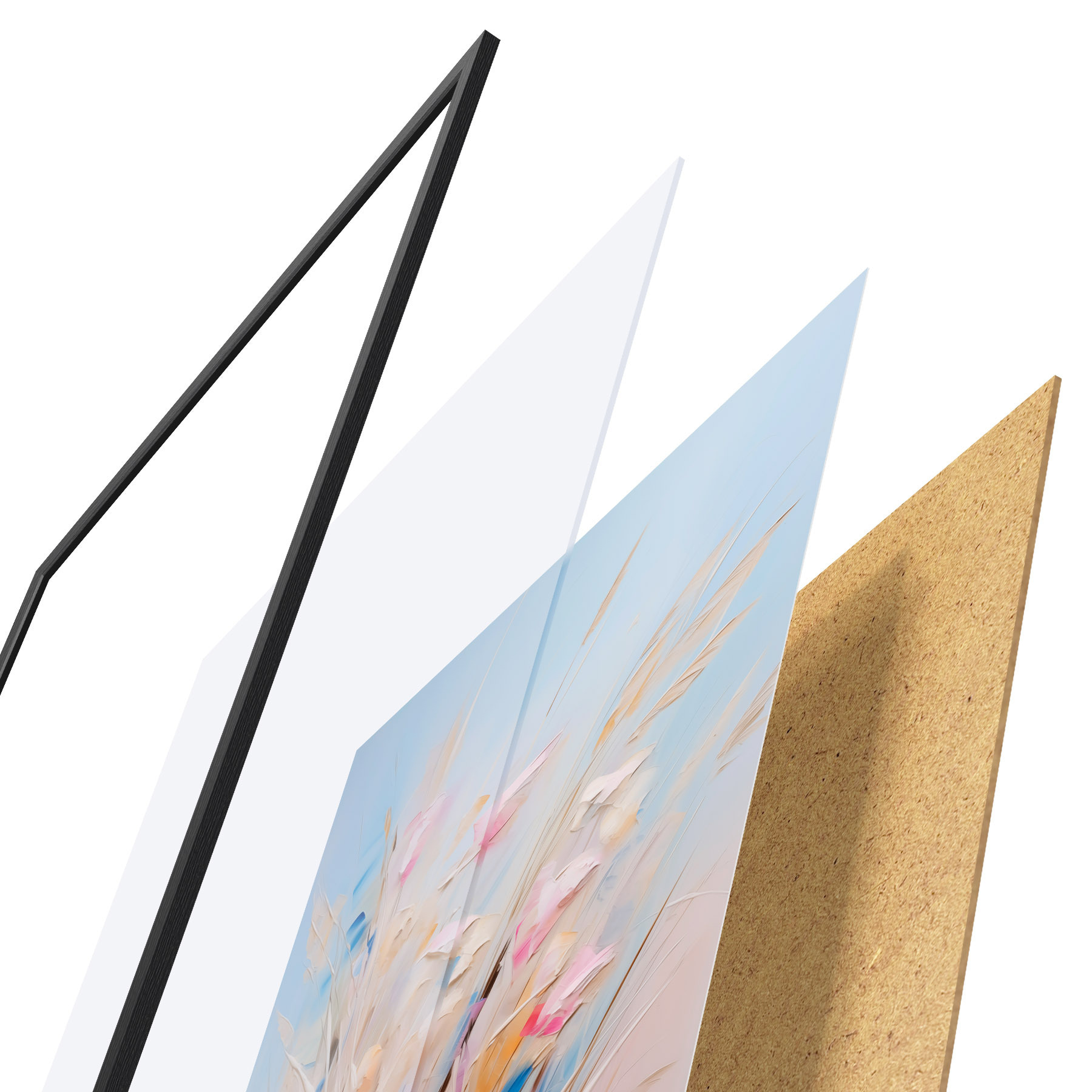 Plakat koosneb raamist, pleksiklaasist, trükitud pildist ja puitlaastplaadist alusplaadist. Tänu tagaküljel olevatele kinnitustele saab plakati kohe seinale riputada.