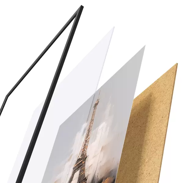 Plakat koosneb raamist, pleksiklaasist, trükitud pildist ja puitlaastplaadist alusplaadist. Tänu tagaküljel olevatele kinnitustele saab plakati kohe seinale riputada.