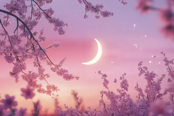 Poster Kirsiõied, roosa taevas koos särava kuuga, realism Nr f44715