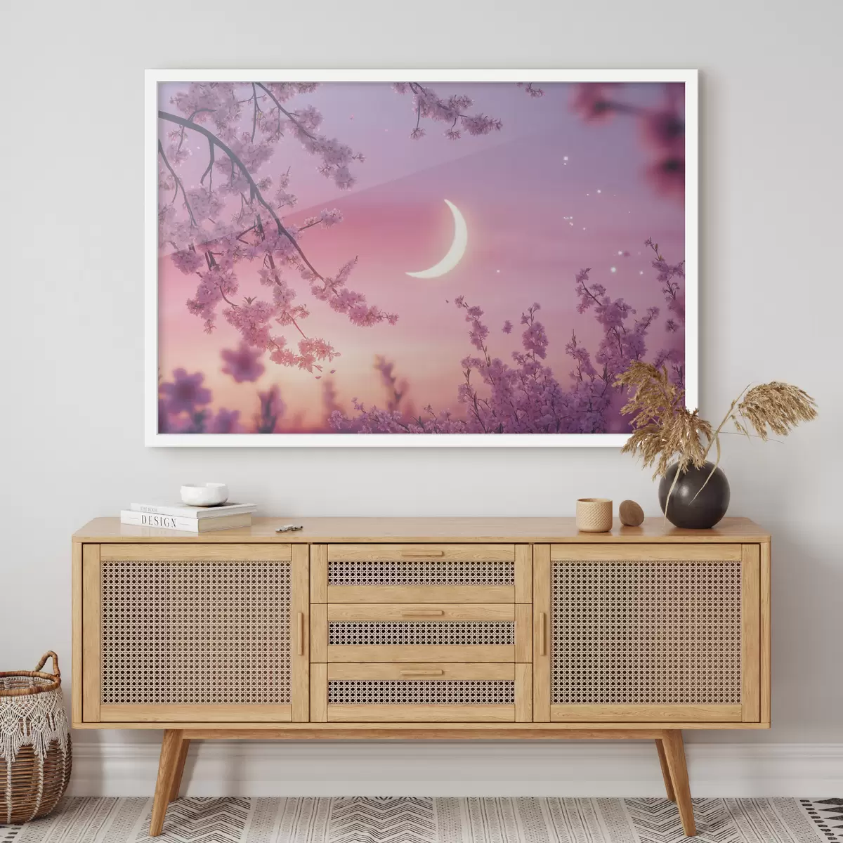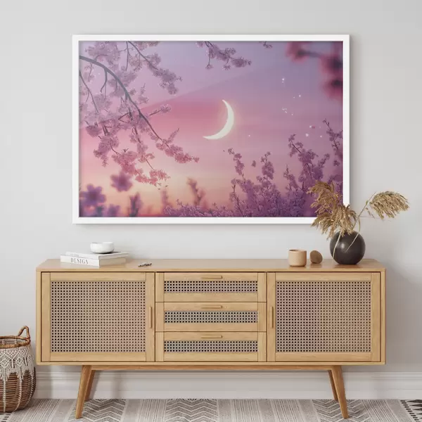 Plakat Kirsiõied, roosa taevas koos särava kuuga, realism f44715