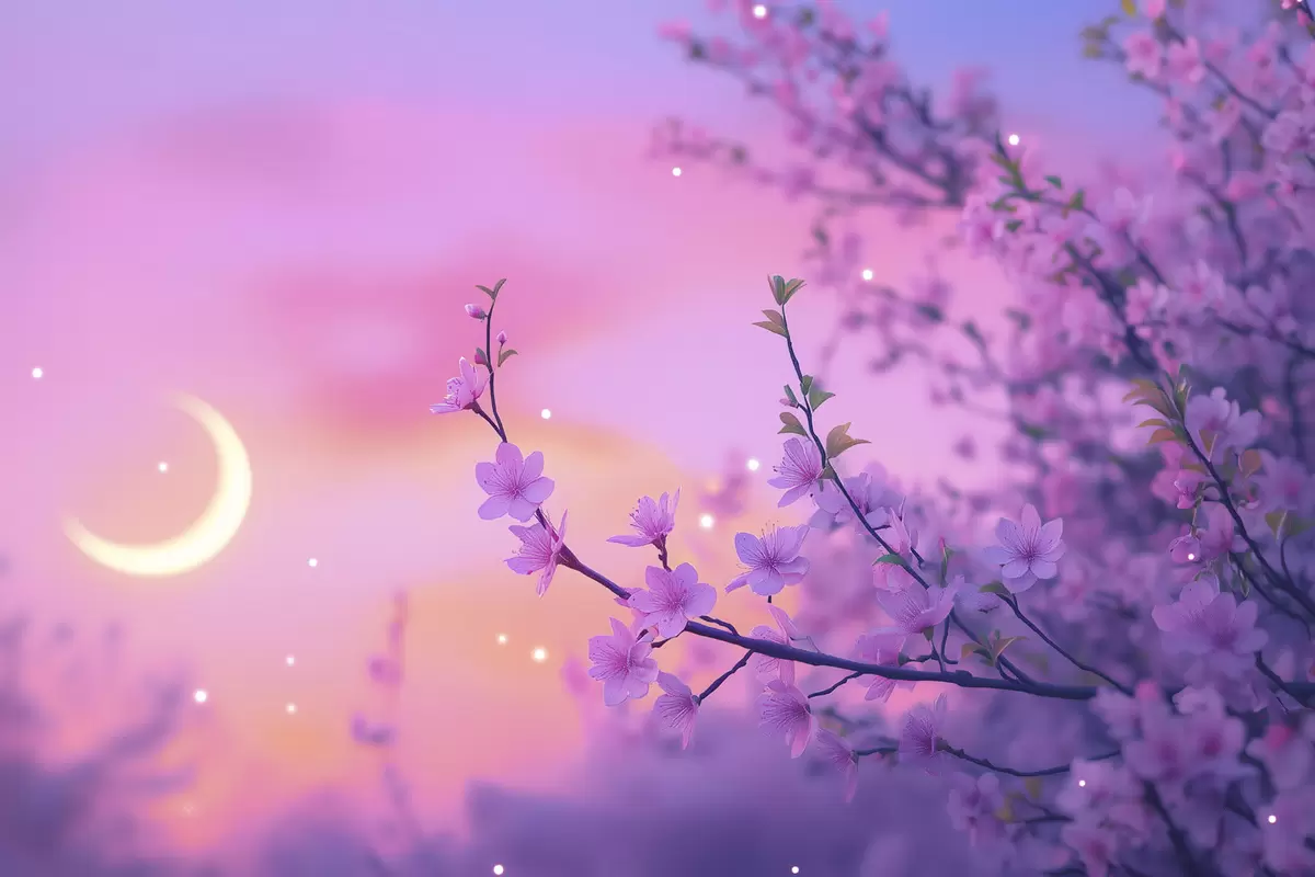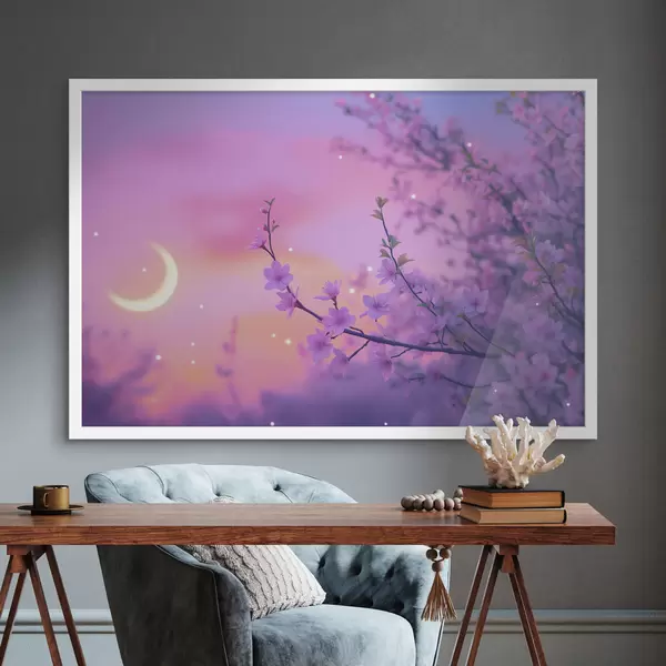 Poster Lilla taevas koos kuu ja kirsipuudega Nr f44717