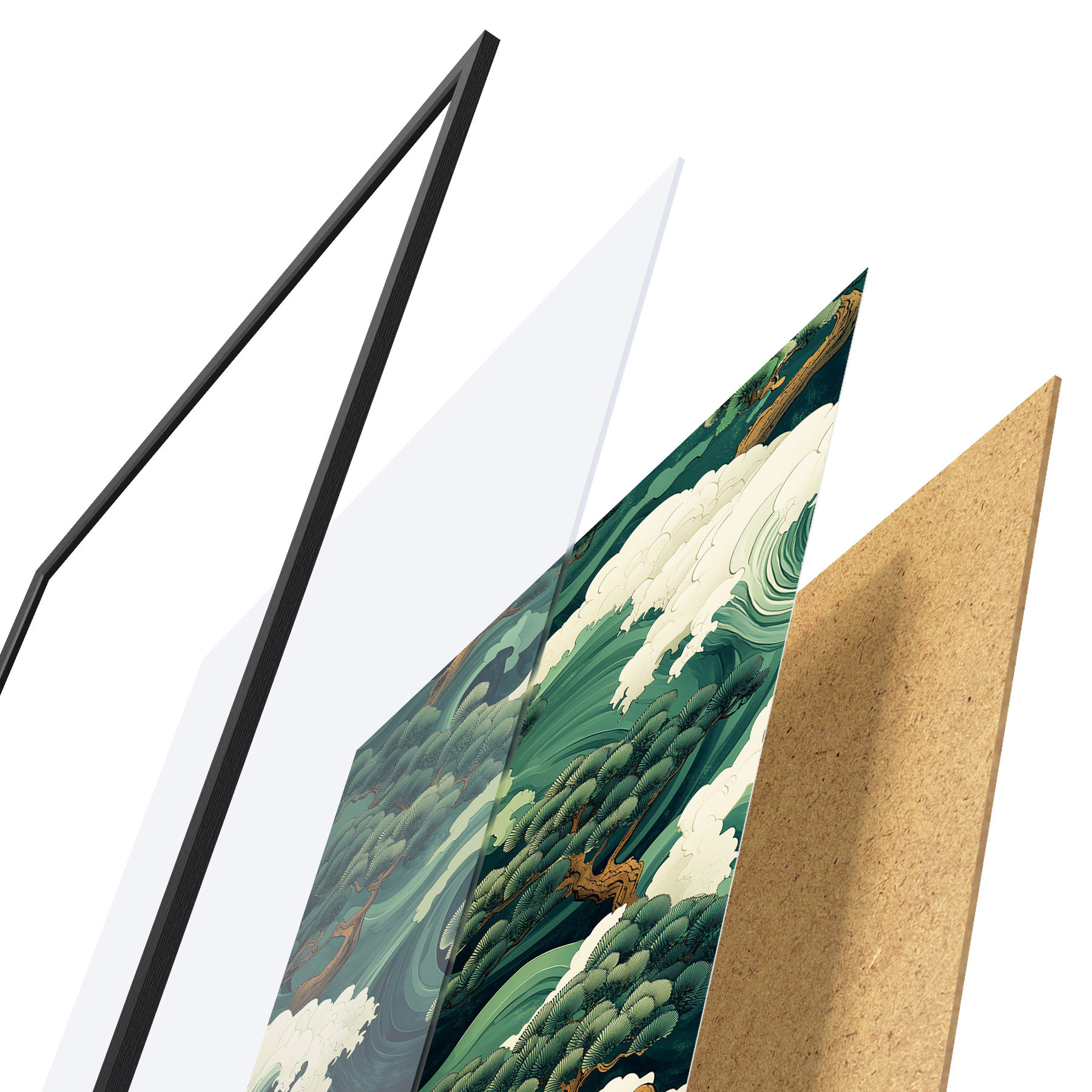 Poster Hiina stiilis joonistus merelainete ja männipuudega Nr f44719