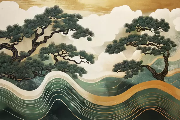 Plakat Abstraktsed maastikud mändidega, hiina stiilis f44720