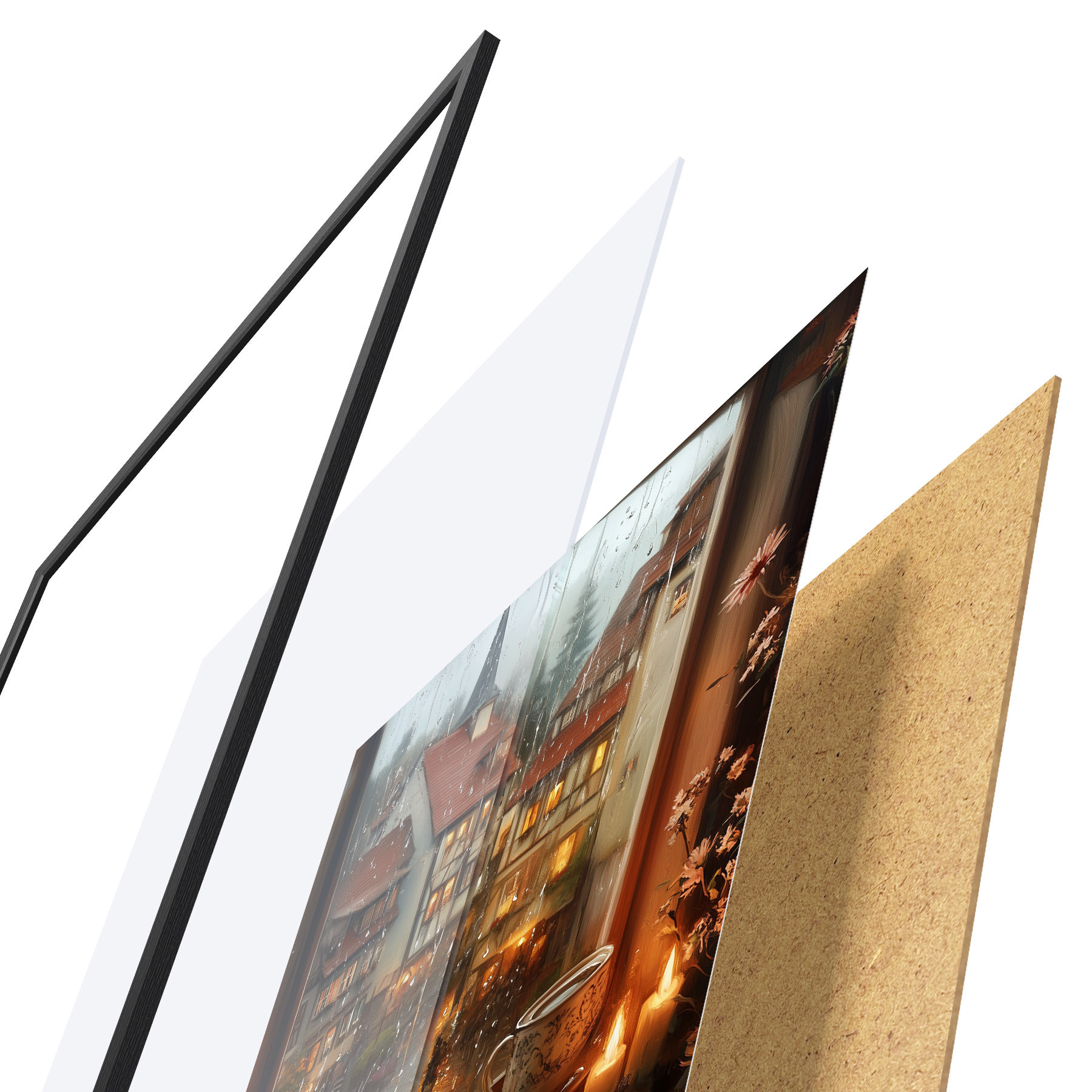 Plakat koosneb raamist, pleksiklaasist, trükitud pildist ja puitlaastplaadist alusplaadist. Tänu tagaküljel olevatele kinnitustele saab plakati kohe seinale riputada.