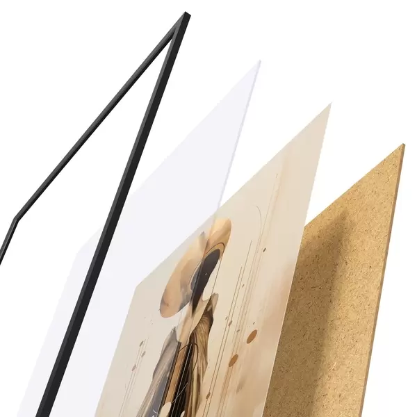Plakat koosneb raamist, pleksiklaasist, trükitud pildist ja puitlaastplaadist alusplaadist. Tänu tagaküljel olevatele kinnitustele saab plakati kohe seinale riputada.