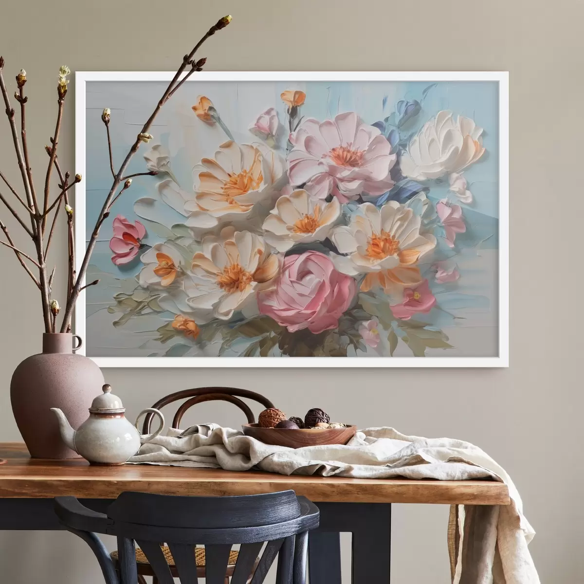 Me müüme pilte kanderaamidel - see on puidust raam, millele lõuend on pingutatud. Seda pilti ei ole vaja raamida, seda võib riputada otse seinale.