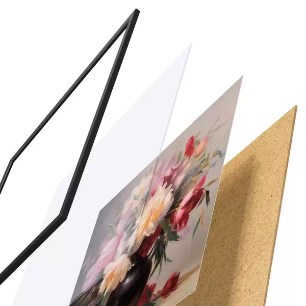 Plakat koosneb raamist, pleksiklaasist, trükitud pildist ja puitlaastplaadist alusplaadist. Tänu tagaküljel olevatele kinnitustele saab plakati kohe seinale riputada.