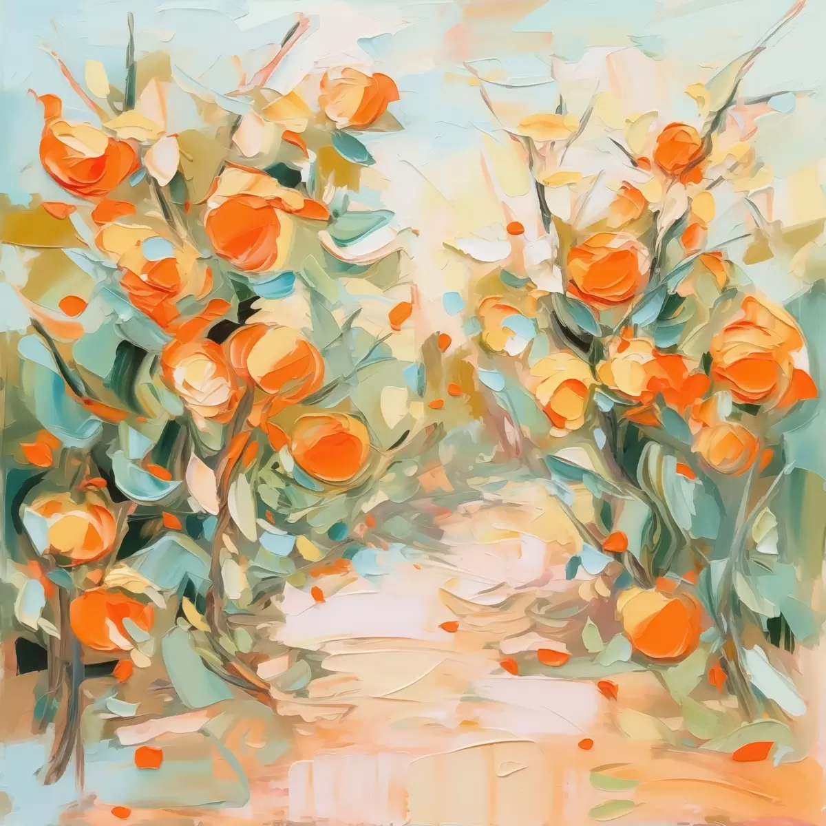 Plakat Abstraktne apelsinimetsade imitatsioonimaal f44772