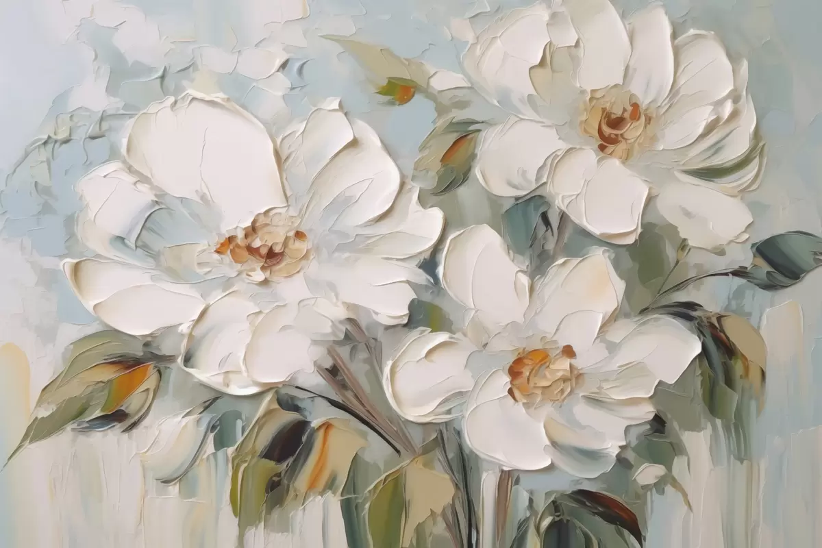 Plakat Valge lillede imitatsiooni maalimine f44775