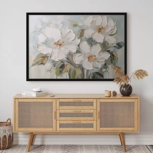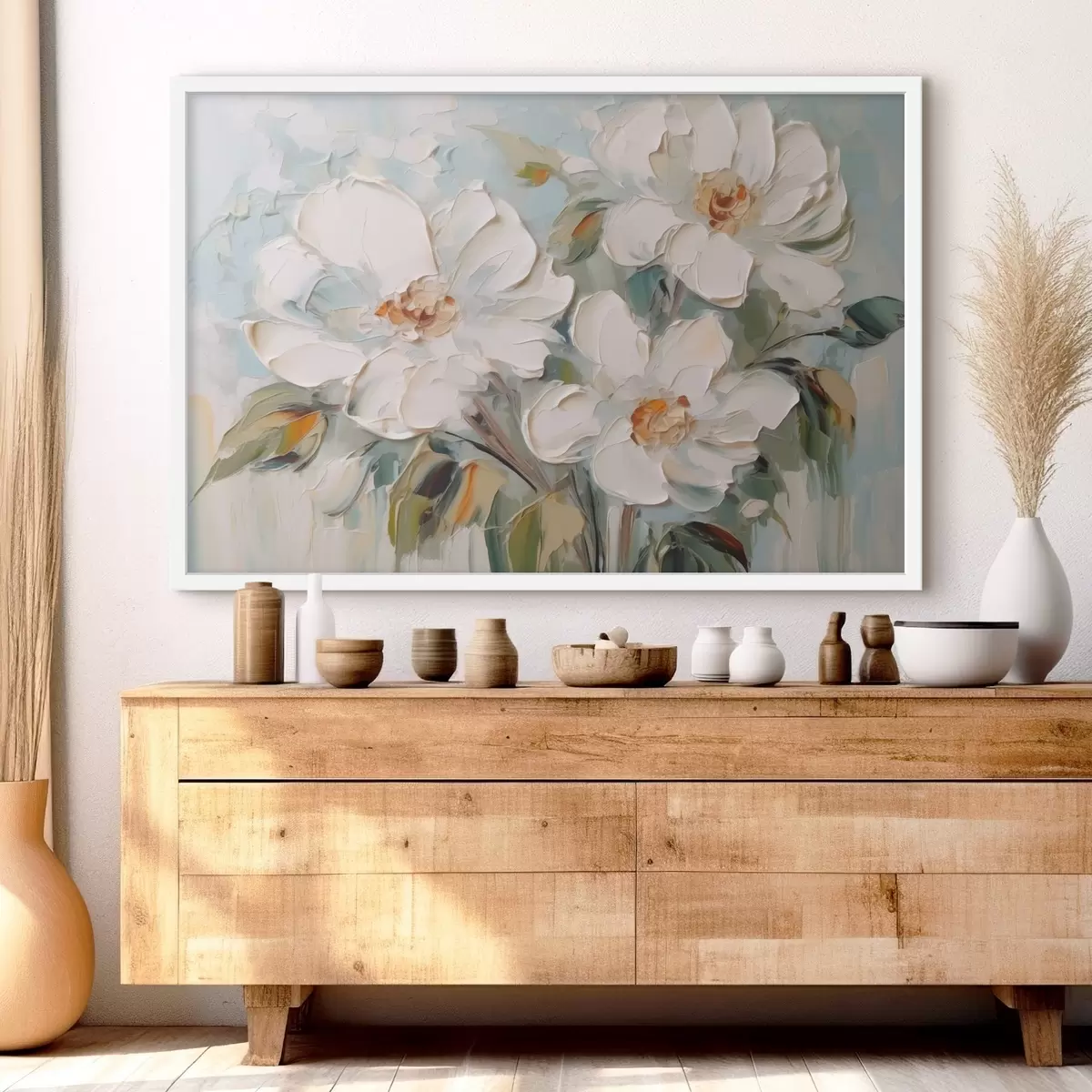 Poster Valge lillede imitatsiooni maalimine Nr f44775