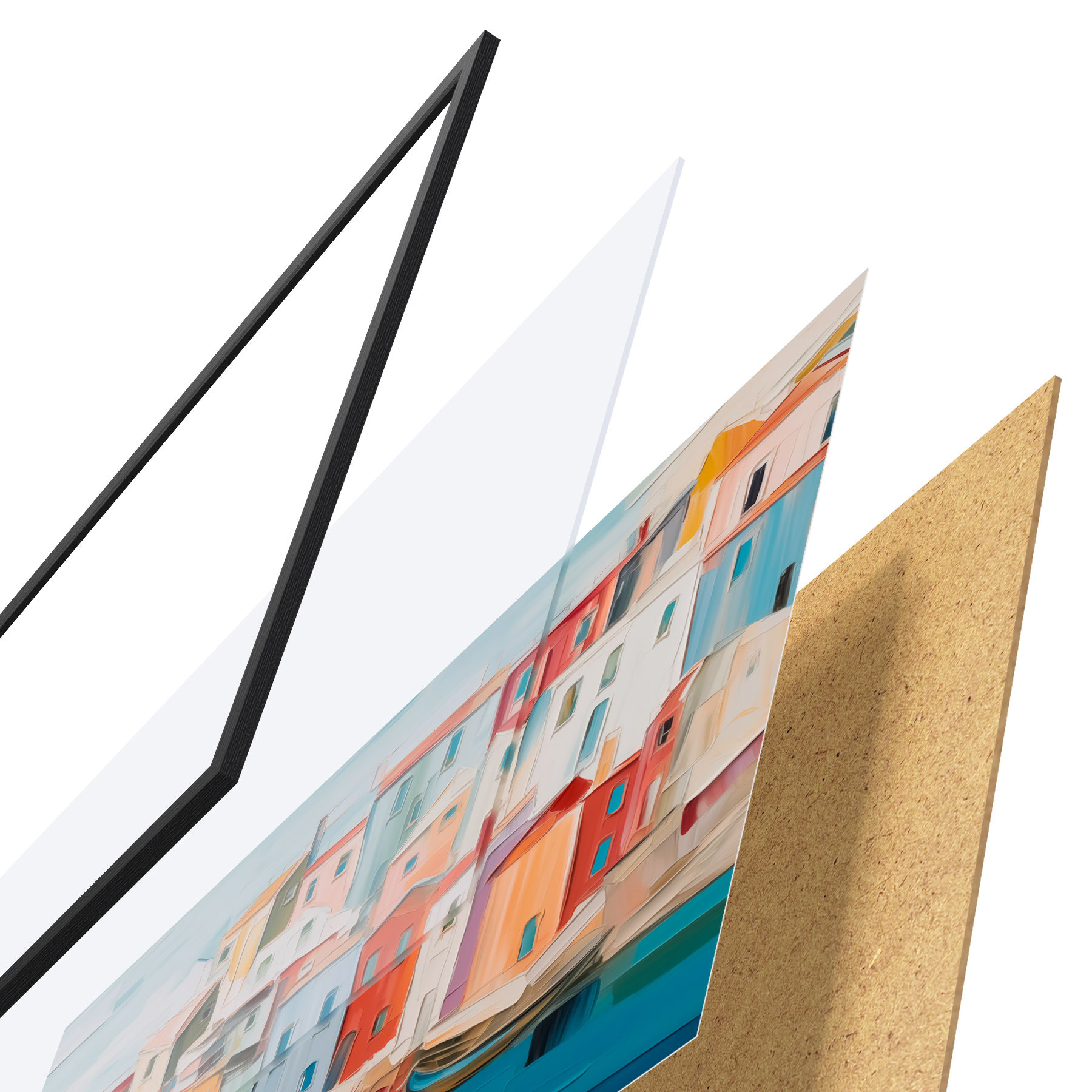 Plakat koosneb raamist, pleksiklaasist, trükitud pildist ja puitlaastplaadist alusplaadist. Tänu tagaküljel olevatele kinnitustele saab plakati kohe seinale riputada.