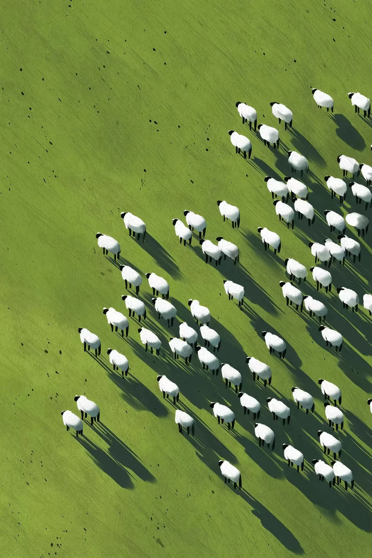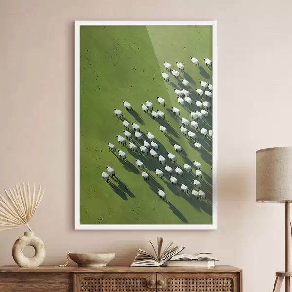 Poster Roheline põld lambakarjaga, abstraktsioon, õhuvaade Nr f44793
