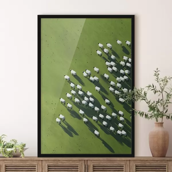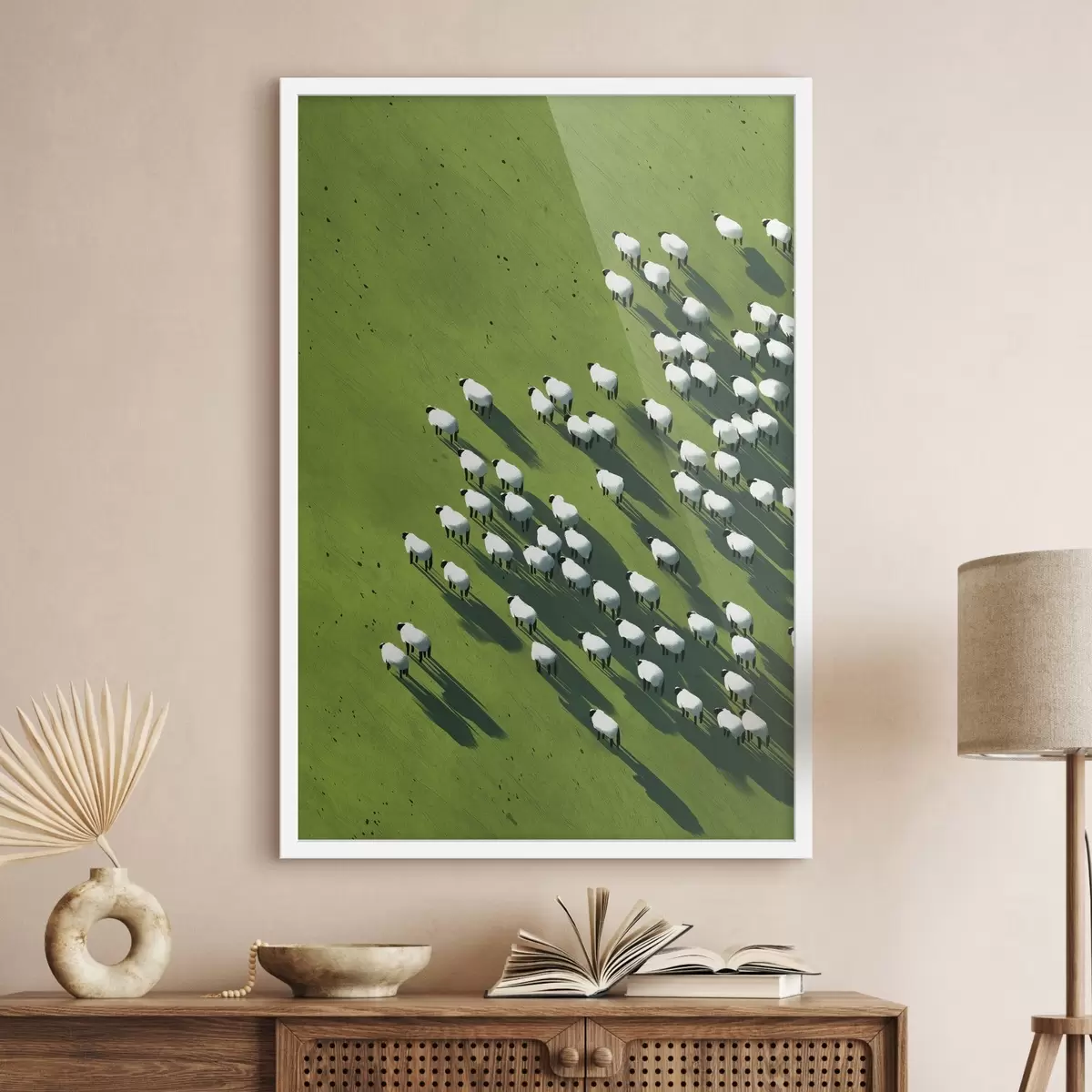 Plakat Roheline põld lambakarjaga, abstraktsioon, õhuvaade f44793
