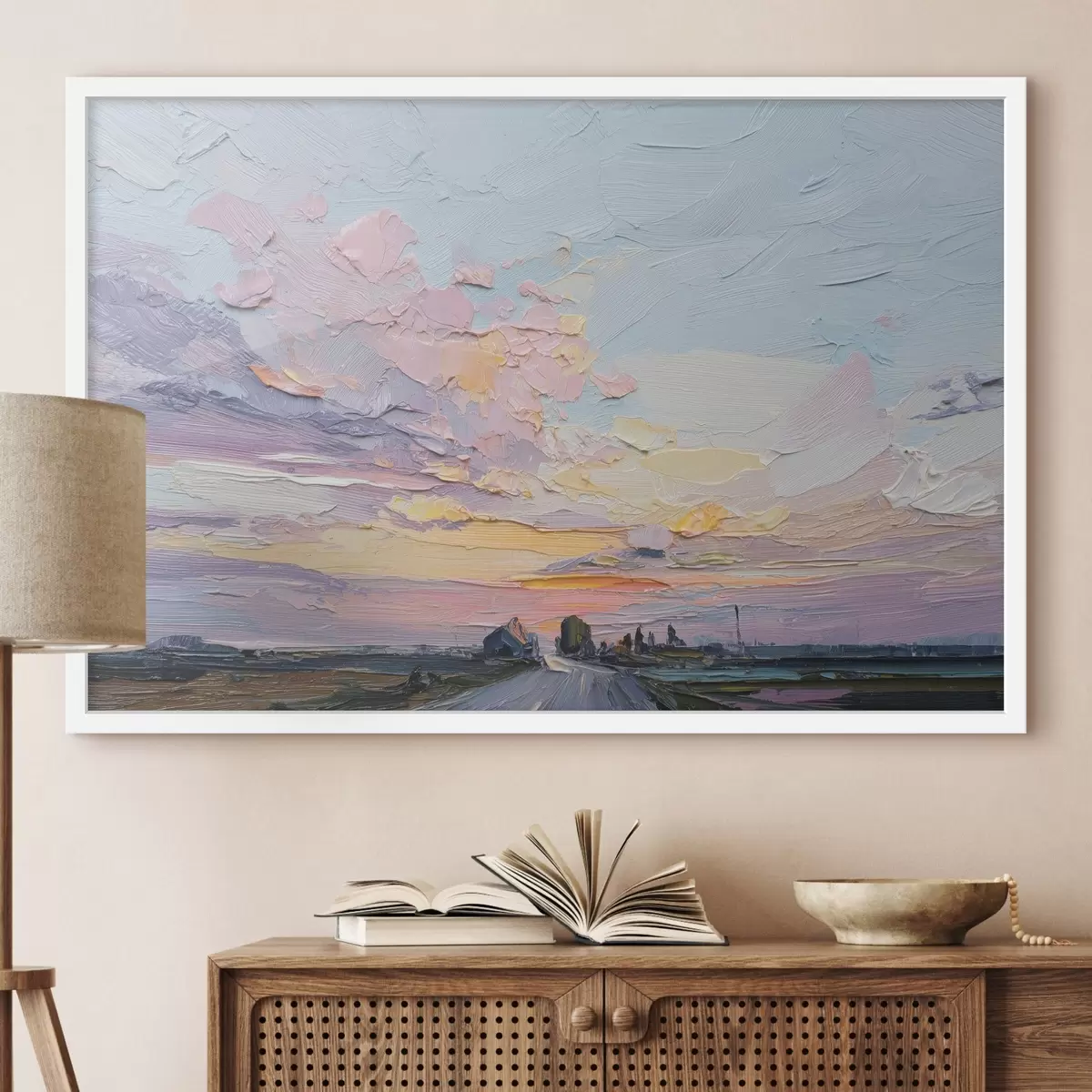 Me müüme pilte kanderaamidel - see on puidust raam, millele lõuend on pingutatud. Seda pilti ei ole vaja raamida, seda võib riputada otse seinale.
