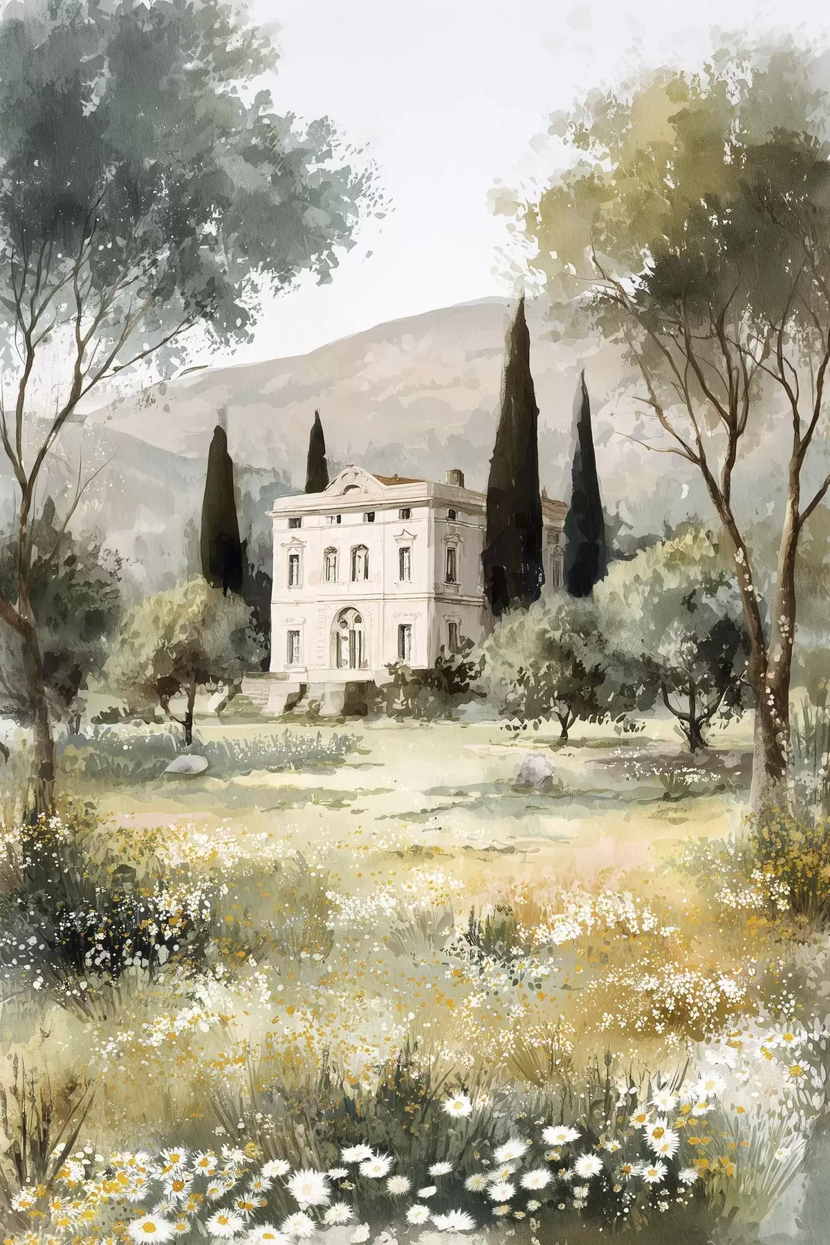 Plakat Vahemere küla valge maja ümbritsetud aiaga f44796