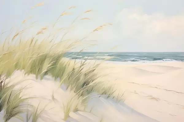 Plakat Liiva ja rohuga mereäärne rannik f44806