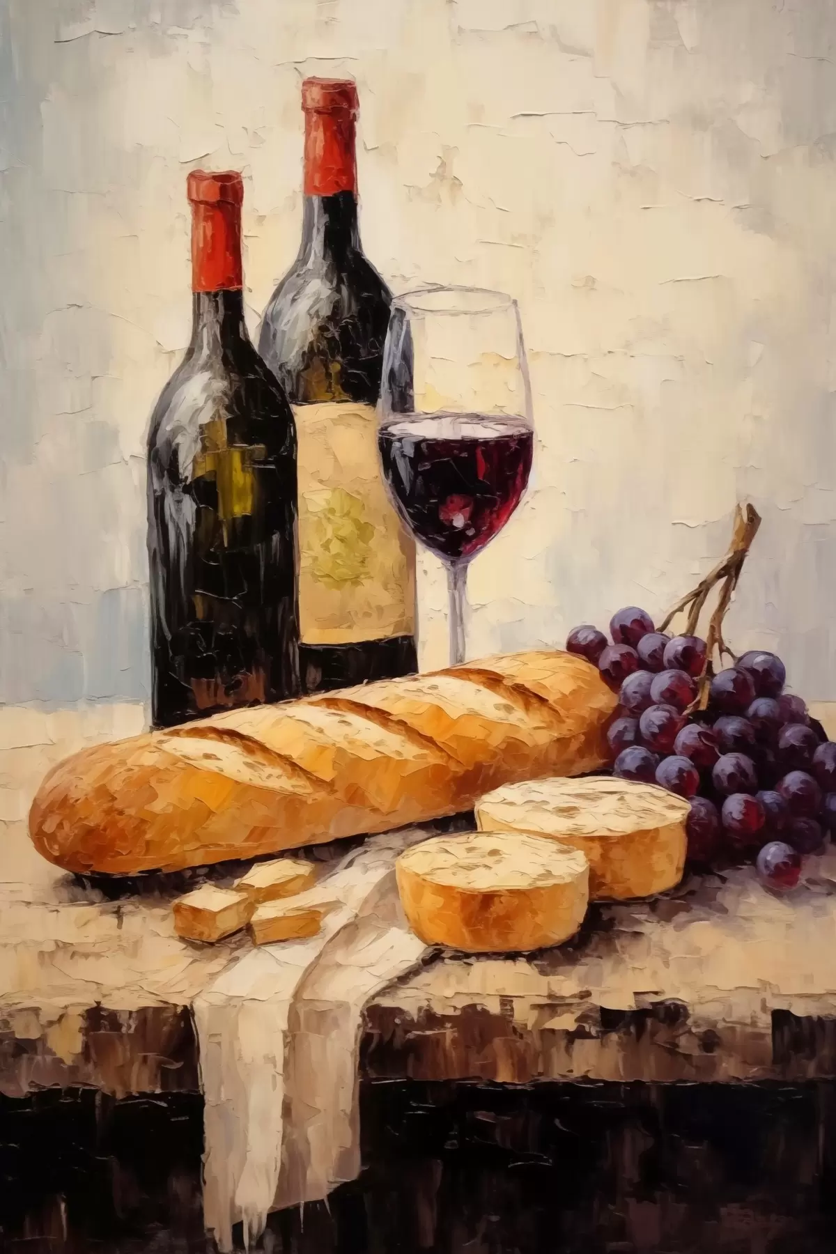 Poster Vein, baguette ja viinamarjad Nr f44815