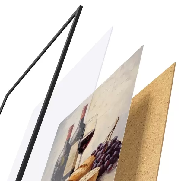 Plakat koosneb raamist, pleksiklaasist, trükitud pildist ja puitlaastplaadist alusplaadist. Tänu tagaküljel olevatele kinnitustele saab plakati kohe seinale riputada.