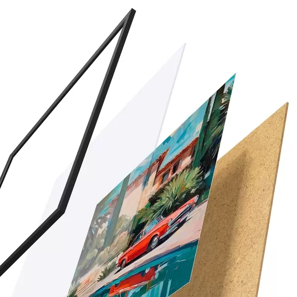 Plakat koosneb raamist, pleksiklaasist, trükitud pildist ja puitlaastplaadist alusplaadist. Tänu tagaküljel olevatele kinnitustele saab plakati kohe seinale riputada.