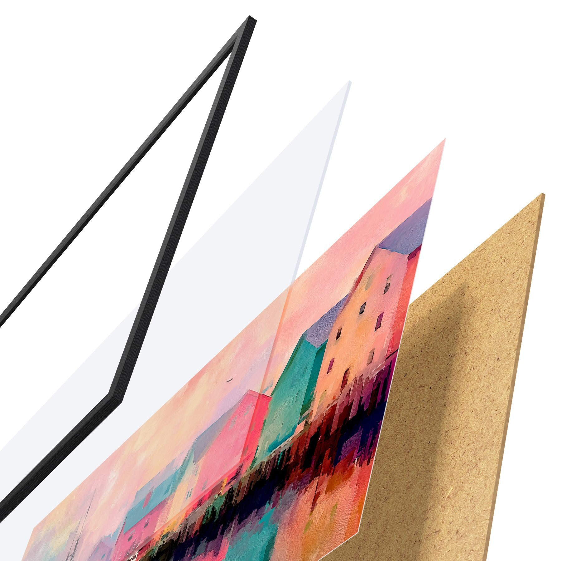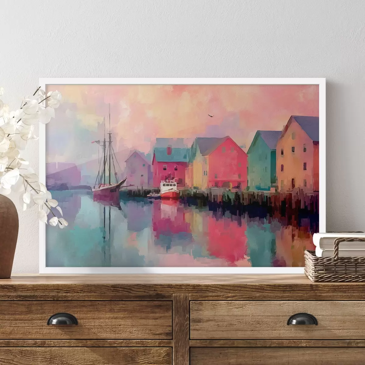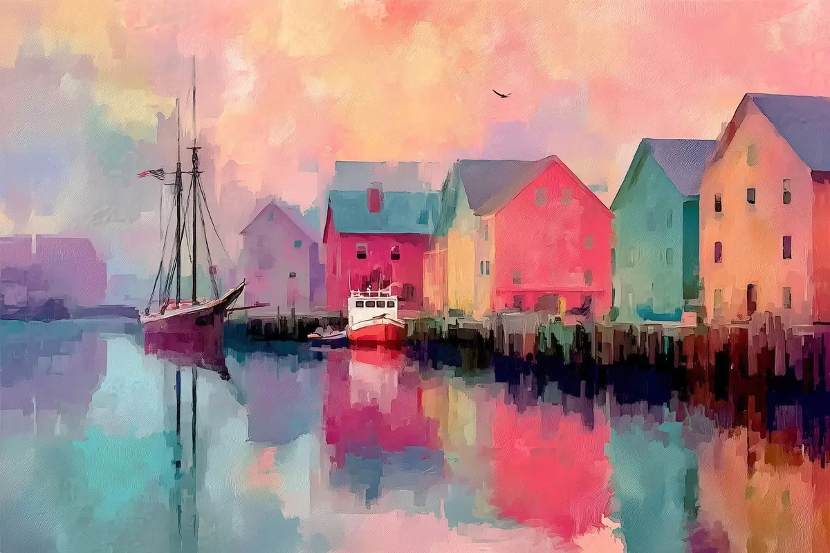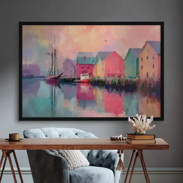 Plakat Värvilised majad vee ääres pintslitõmbega stiilis f44837