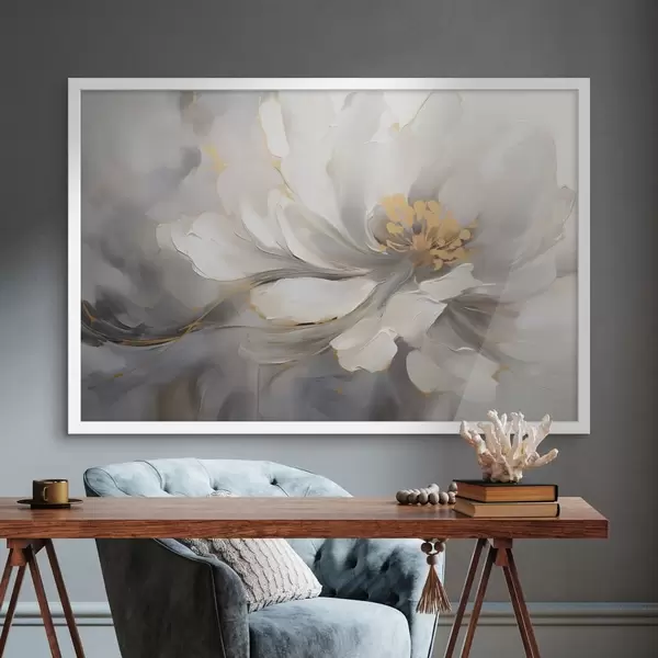 Poster Valge lill koos aktsentidega abstraktses stiilis Nr f44838