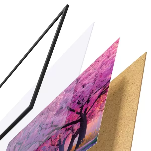 Plakat koosneb raamist, pleksiklaasist, trükitud pildist ja puitlaastplaadist alusplaadist. Tänu tagaküljel olevatele kinnitustele saab plakati kohe seinale riputada.