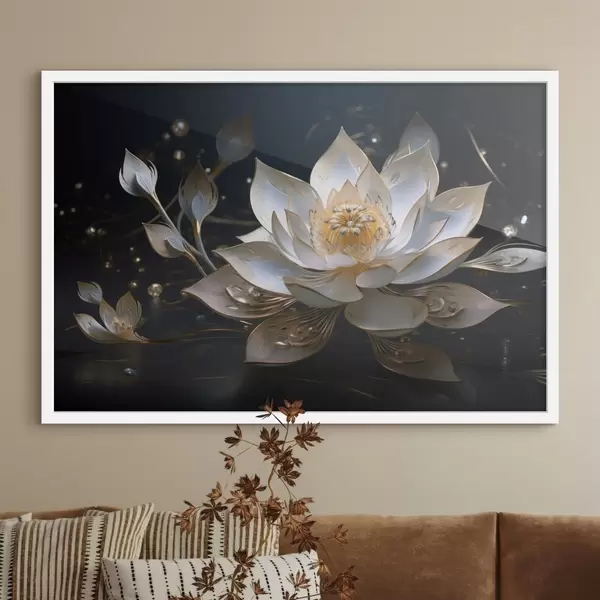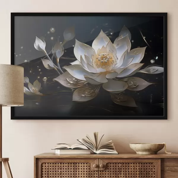 Plakat Lootus elegantsete mustritega tumedal taustal f44841