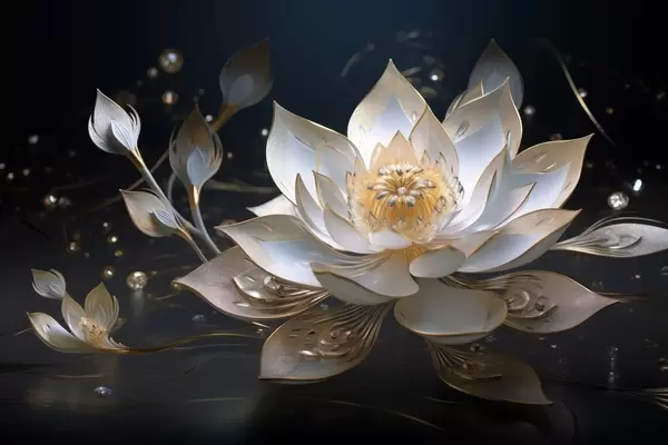Plakat Lootus elegantsete mustritega tumedal taustal f44841