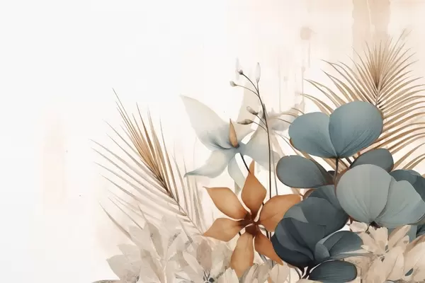 Plakat Dekoratiivsed lehed ja lilled akvarellistiilis f44843