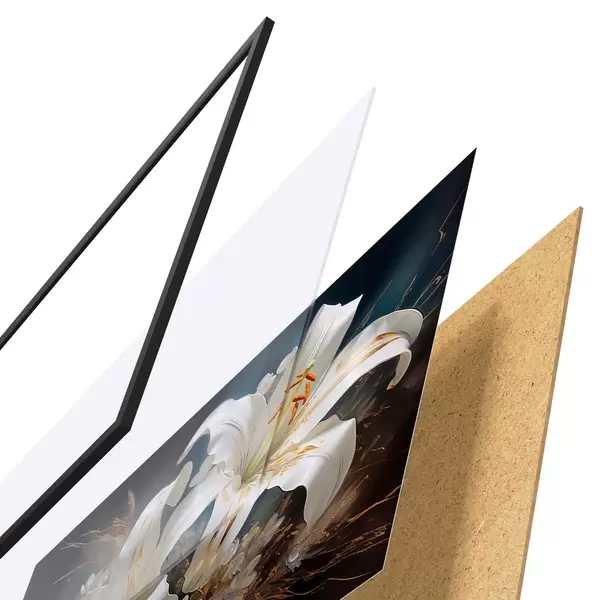 Poster Lillelilled tumedal taustal koos dekoratiivsete elementidega Nr f44848
