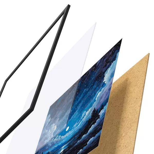 Plakat koosneb raamist, pleksiklaasist, trükitud pildist ja puitlaastplaadist alusplaadist. Tänu tagaküljel olevatele kinnitustele saab plakati kohe seinale riputada.