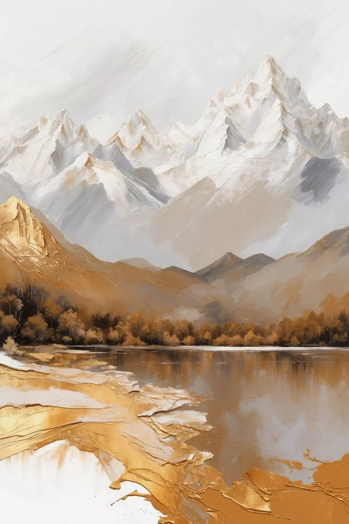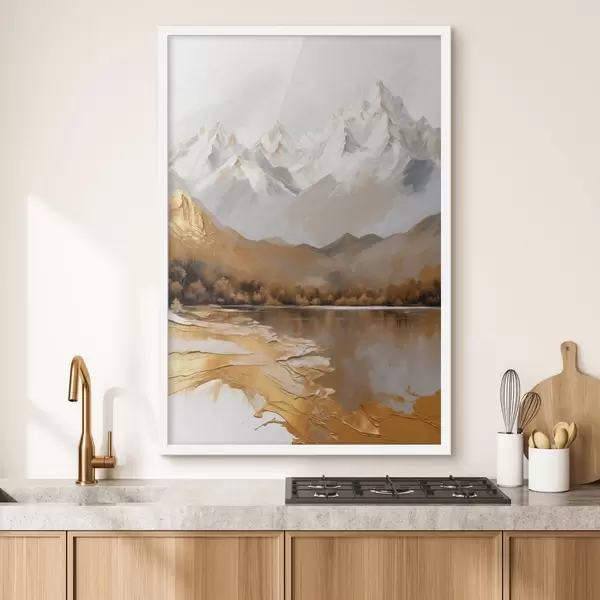 Poster Mägimaastik koos järvega soojades värvides Nr f44877