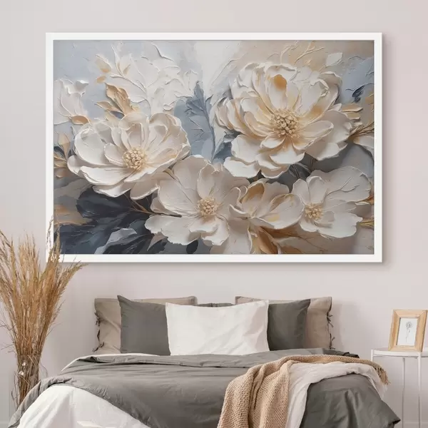 Poster Volüümilised kreemjad pojengid helesinisel taustal Nr f44880