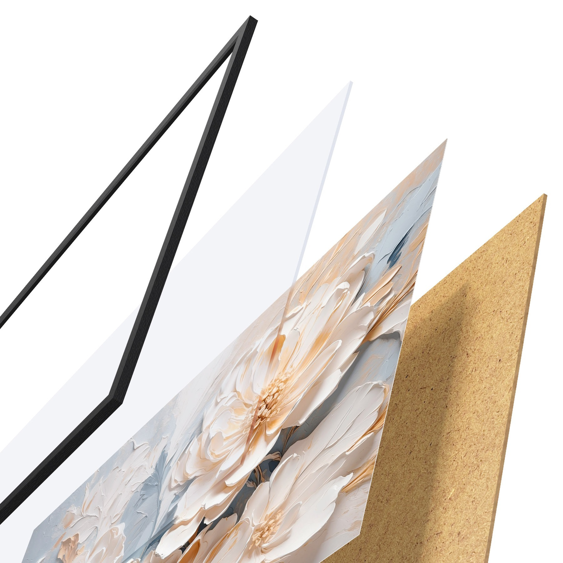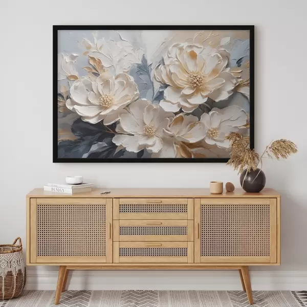 Plakat Volüümilised kreemjad pojengid helesinisel taustal f44880