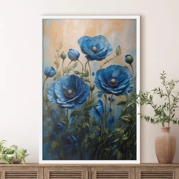 Poster Sinised moonid pastelsel taustal koos lehtedega Nr f44882
