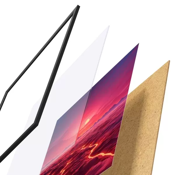 Plakat koosneb raamist, pleksiklaasist, trükitud pildist ja puitlaastplaadist alusplaadist. Tänu tagaküljel olevatele kinnitustele saab plakati kohe seinale riputada.