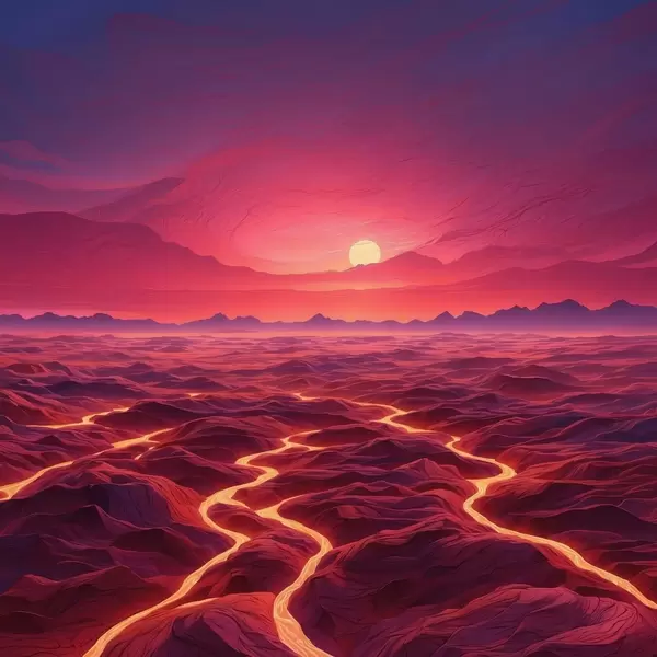 Poster Kuum maastik koos laavavoogudega punase taeva all Nr f44886
