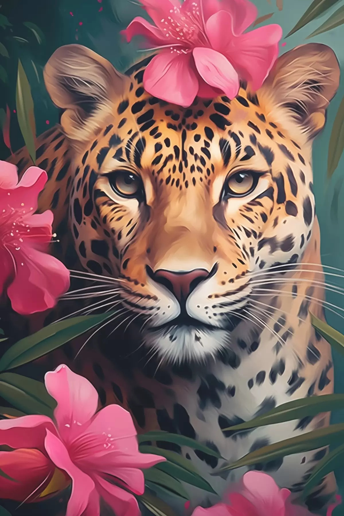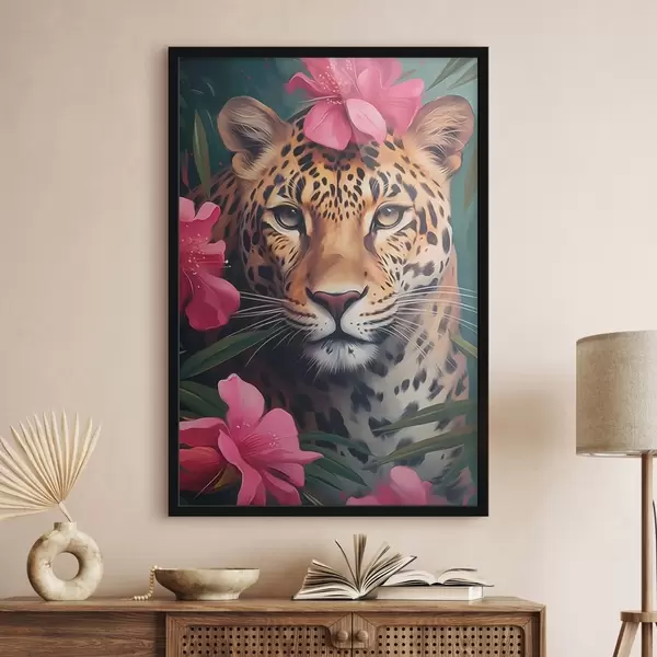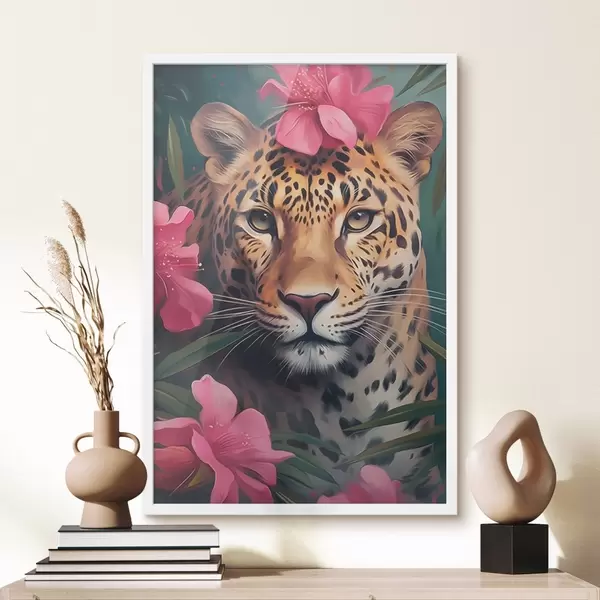 Poster Leopard troopiliste lillede keskel Nr f44918