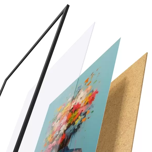 Plakat koosneb raamist, pleksiklaasist, trükitud pildist ja puitlaastplaadist alusplaadist. Tänu tagaküljel olevatele kinnitustele saab plakati kohe seinale riputada.