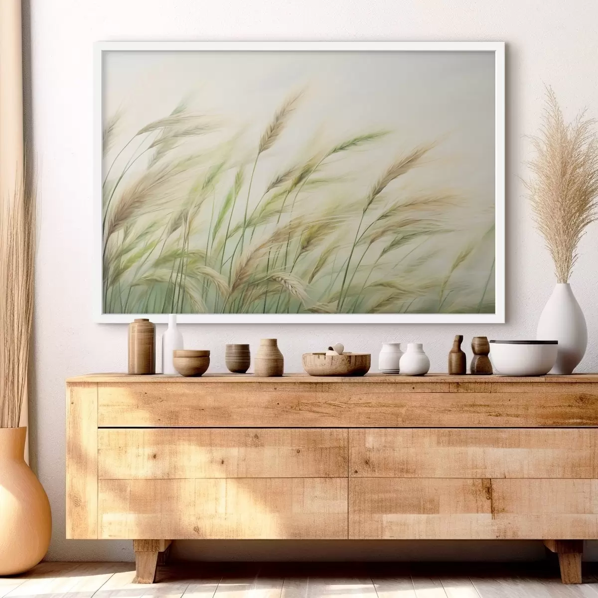 Poster Nisupõld kollaste ja roheliste viljateradega, pehmed pintslitõmbed ja kerge värvipalett, loomulik atmosfäär Nr f44923