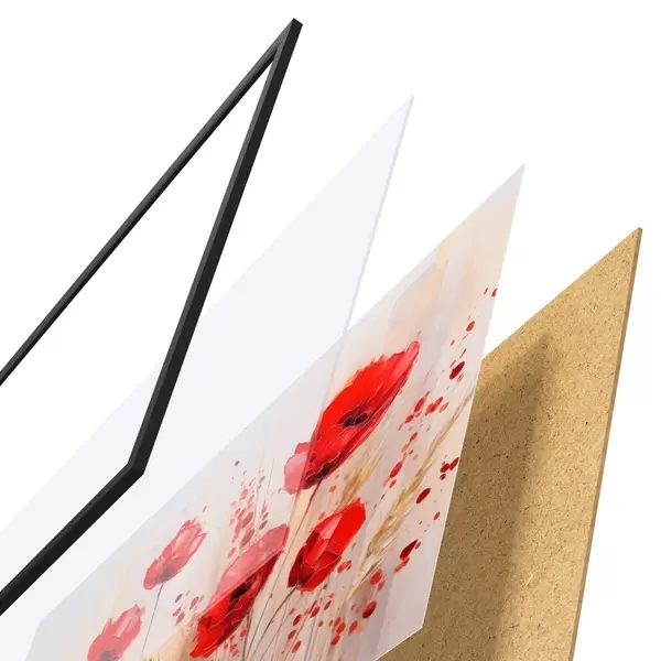 Plakat koosneb raamist, pleksiklaasist, trükitud pildist ja puitlaastplaadist alusplaadist. Tänu tagaküljel olevatele kinnitustele saab plakati kohe seinale riputada.