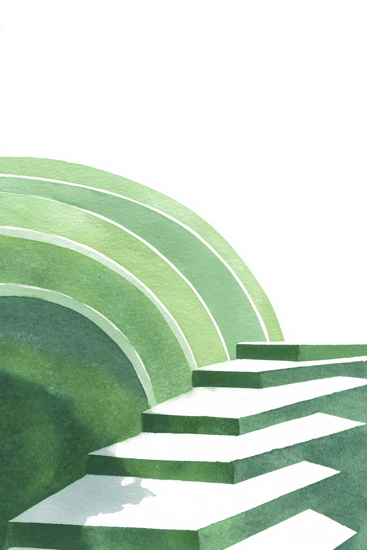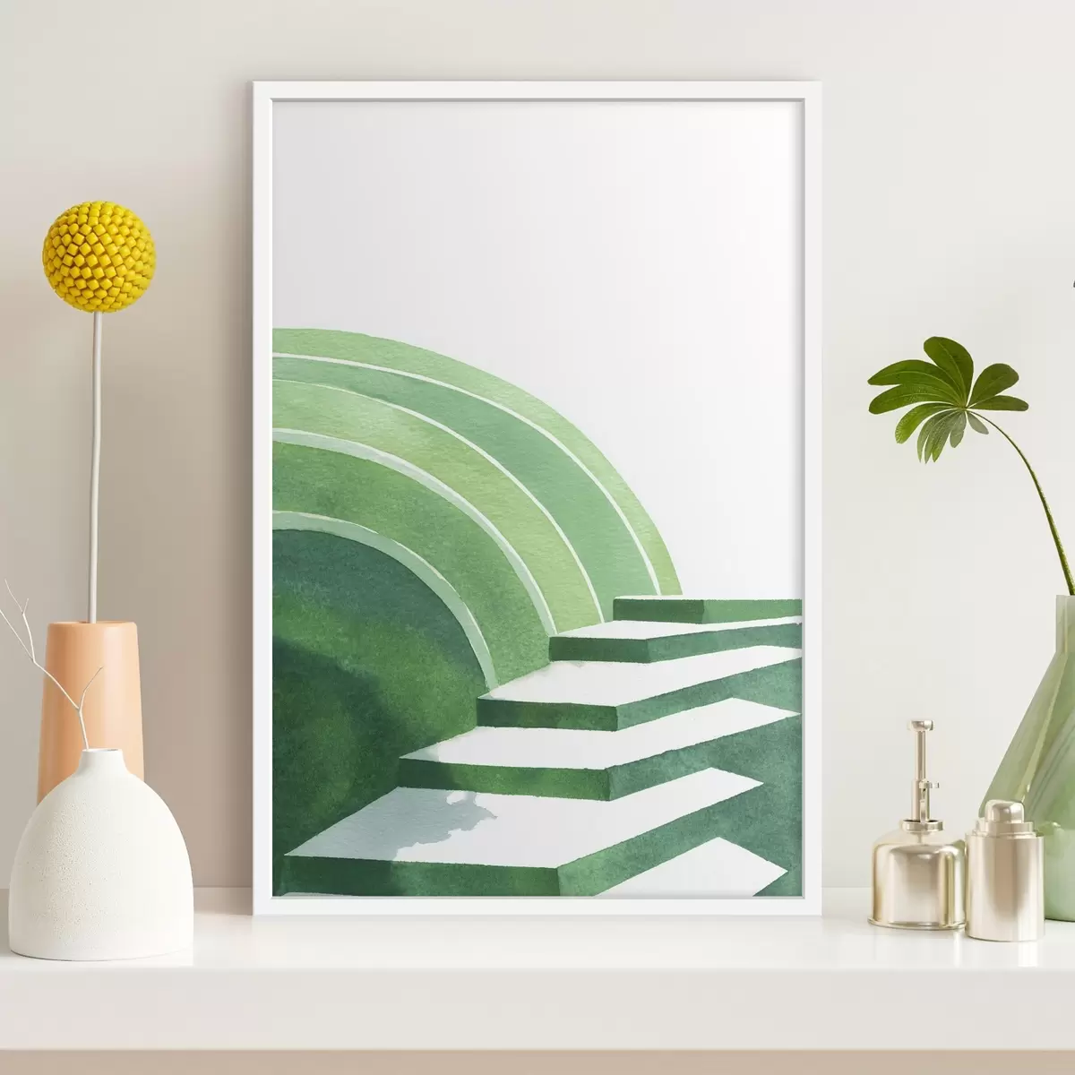 Poster Geomeetriline abstraktsioon rohelistes värvides, akvarellistiilis Nr f44981
