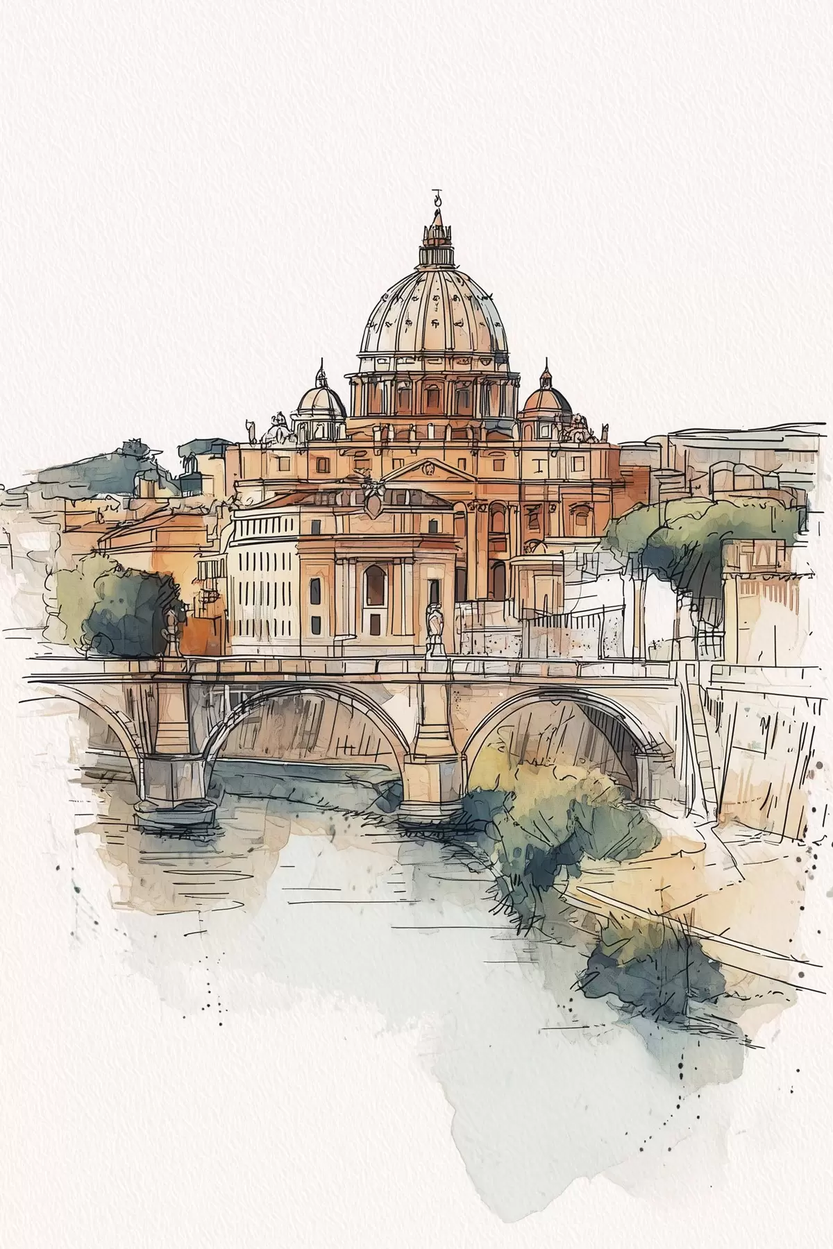 Poster Akvarell Rooma linn, visandiline joonistus, arhitektuur Nr f44983