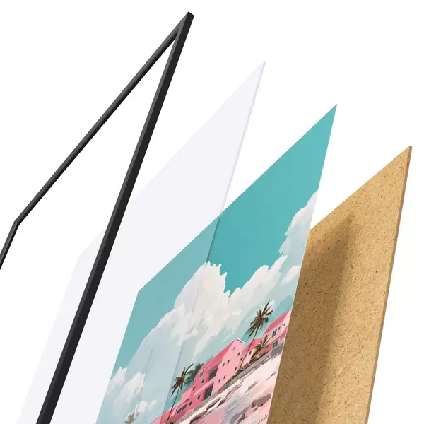 Plakat koosneb raamist, pleksiklaasist, trükitud pildist ja puitlaastplaadist alusplaadist. Tänu tagaküljel olevatele kinnitustele saab plakati kohe seinale riputada.
