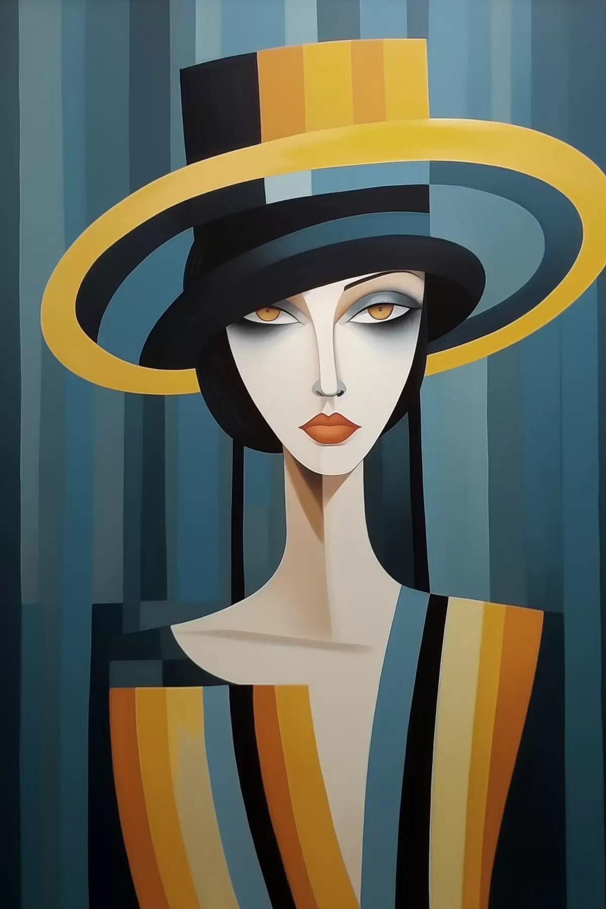 Poster Abstraktne portree naisest mütsiga Nr f44990
