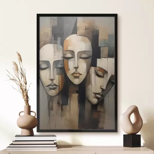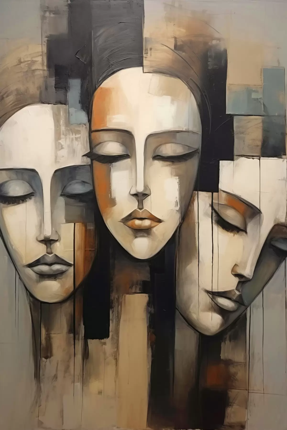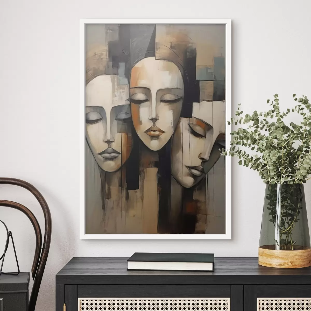 Poster Kolm suletud silmadega naise nägu kubismi stiilis Nr f45008